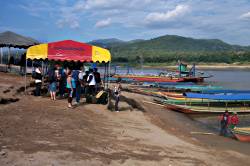 The border crossing is ad-hoc to say the least. You have to remember to go to the Thai immigration building first to get your exit visa stamped, it's easy to walk straight past this. Then carry the bags down a mud bank to catch a boat across to Huay Xai on the opposite bank of the Mekong