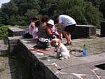 The first proper walk was at Cressbrook Dale (2, 3) near Tideswell. We were accompanied by our neighbours Bernard and Heidi. This was Ruskin's first exposure to sheep - a cause of considerable puzzlement - which he was very keen to investigate.