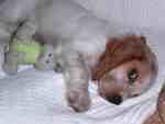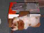 Ruskin joined Tracy and Peter in New Mills on July 8th, 2004 at nearly 10 weeks of age. He is very friendly and believes that every man, woman, child and dog needs to be jumped all over and licked. |