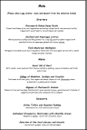 We had a lunch for 18 family and friends at the Old Hall in the Cavendish room. We had agreed a menu with the Old Hall in advance, with some dishes having a local Derbyshire flavour. Everyone had to pick in advance - which proved very difficult for some people (Peter included) - and even harder on the day when Tracy was required to remind everyone of their choices. Click the menu to see why it was so difficult. |