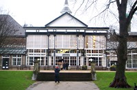 | The Pavillion Gardens Restaurant - the new venue for the wedding. Malcolm is snapping Tracy, Margaret and Diane outside the venue. The Conservatory is to the right of the Restaurant and Tracy was still able to enter the Restaurant from the adjoining section of the conservatory. |